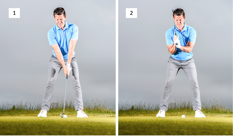Play the ball just forward of centre. Make sure your lead ear is just behind the ball; this will help you pivot just behind it as you make your backswing.