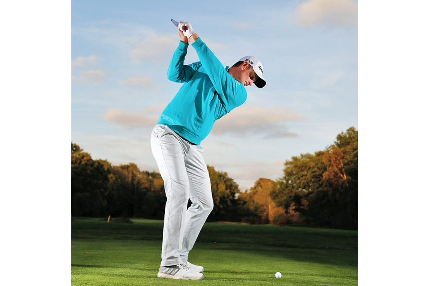 I like the clubhead to move first in the takeaway so the backswing is complete when I finish the turn. My left arm stays pinned to my chest and the big muscles turn the club to the top of the backswing. This helps you swing on a more neutral plane and leads to a straighter ball flight.