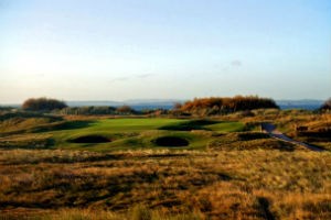 After an unusual par 3 start, a dog-leg 2nd round bunkers clustered in the shape of an ace of clubs, the 3rd and 4th then play back and forth in opposite directions and therefore in reverse difficulty depending on the wind.