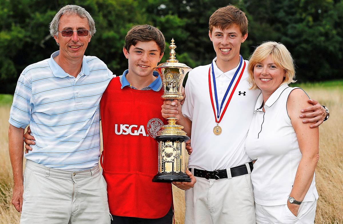 Matt Fitzpatrick celebrates his win at the 2013 US Amateur with brother Alex and his parents.