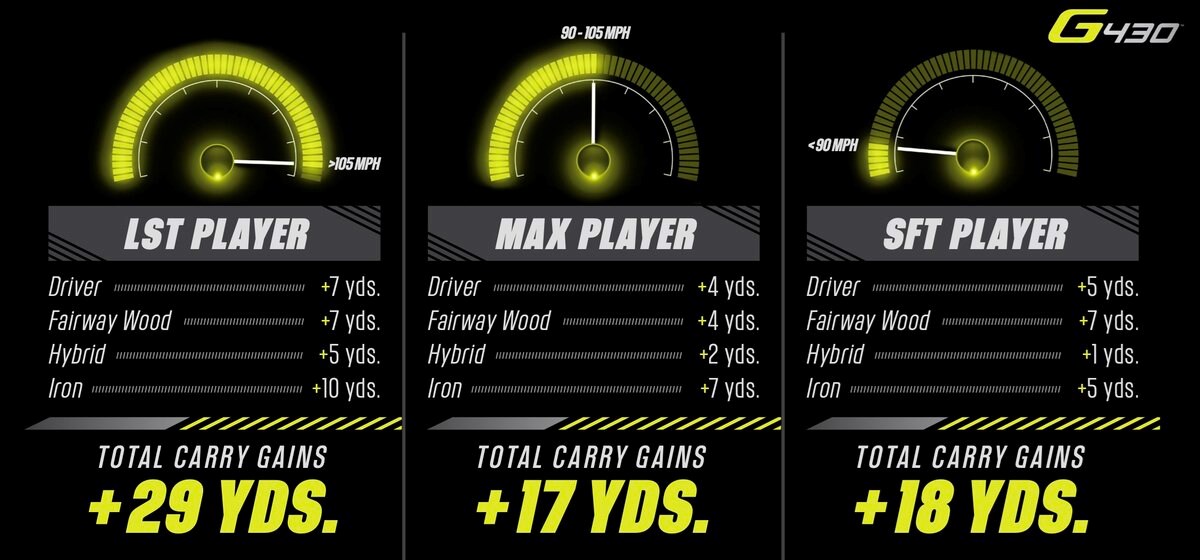 To some that won’t sound much, but take into account gains with the matching G430 fairway woods, hybrids and irons and the total gains rise to 17 yards with the MAX, 18 yards with the SFT and a huge 29 yards with the LST, which is hugely impressive.