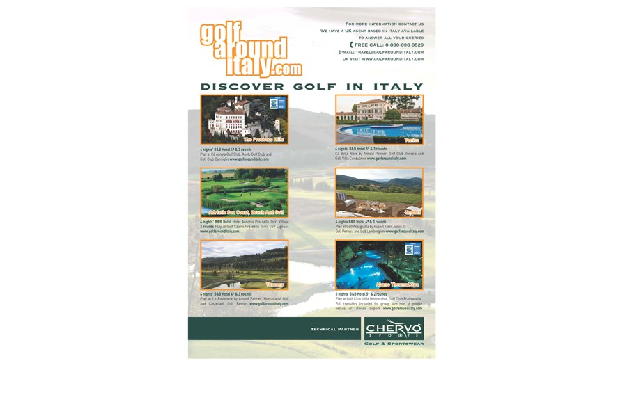 Italy has the rare ability to offer many different experiences in one trip. In a one-week break you can do all of the following: visit the beautiful city of Venice; play golf near the sea; enjoy lovely beaches; play on rolling hills where famous Veneto region wines are produced (with a wine tour if you wish); and then on to play at the foot of the Dolomite mountains, a UNESCO world heritage site and famous for skiing and Nordic walking.