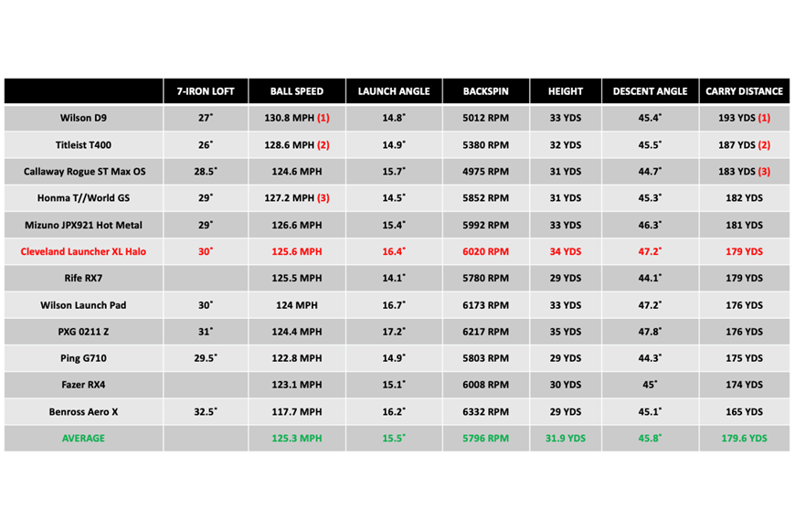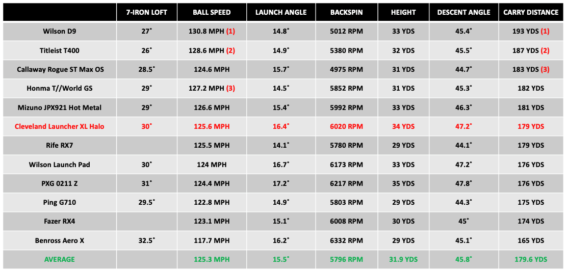 How does the Cleveland Launcher XL Halo iron compare to other High-Handicap Irons in data?