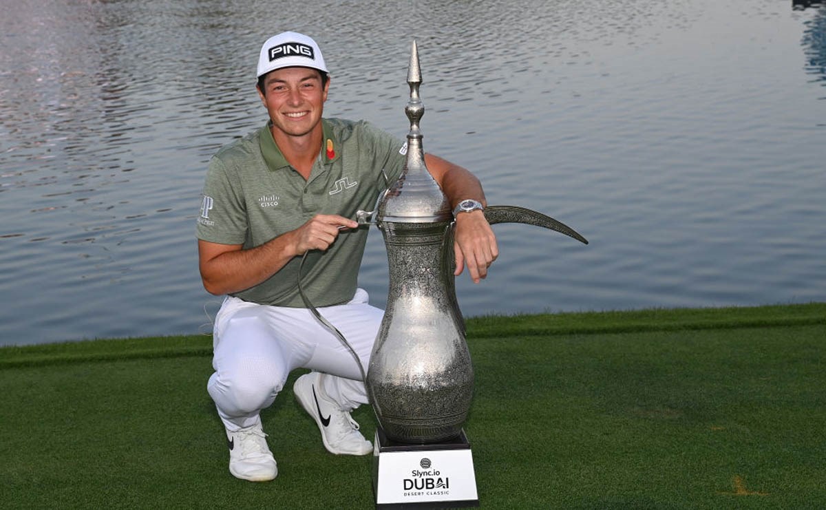 Viktor Hovland won the 2022 Dubai Desert Classic, beating Richard Bland in a play-off for his first Rolex Series win.