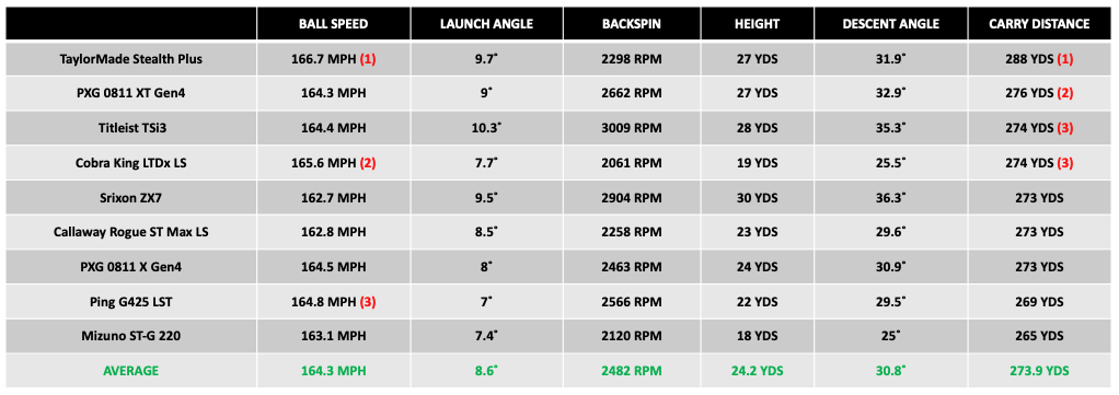How the TaylorMade Stealth Plus compares to other low spin drivers in data (shots hit by TG test pro Neil Wain)