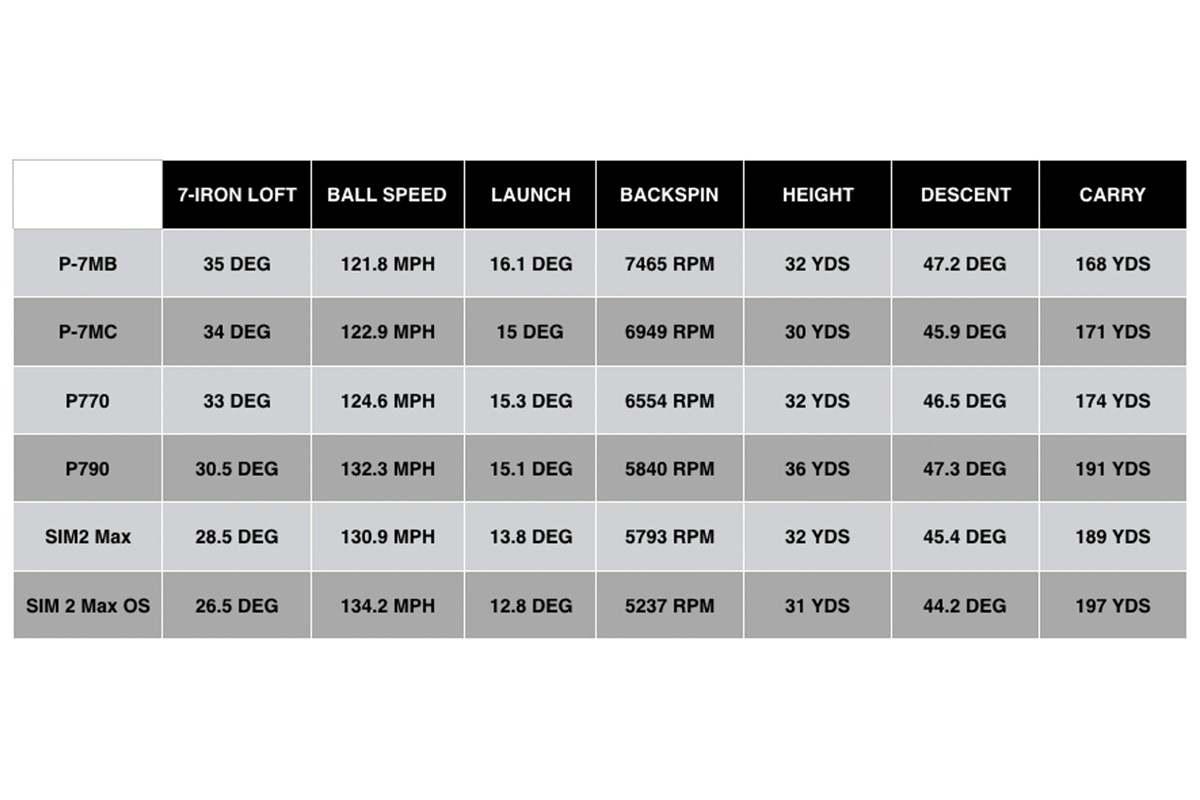 Data comparison: TaylorMade P-7MB, P-7MC, P770, P790, SIM2 Max and SIM2 Max OS irons