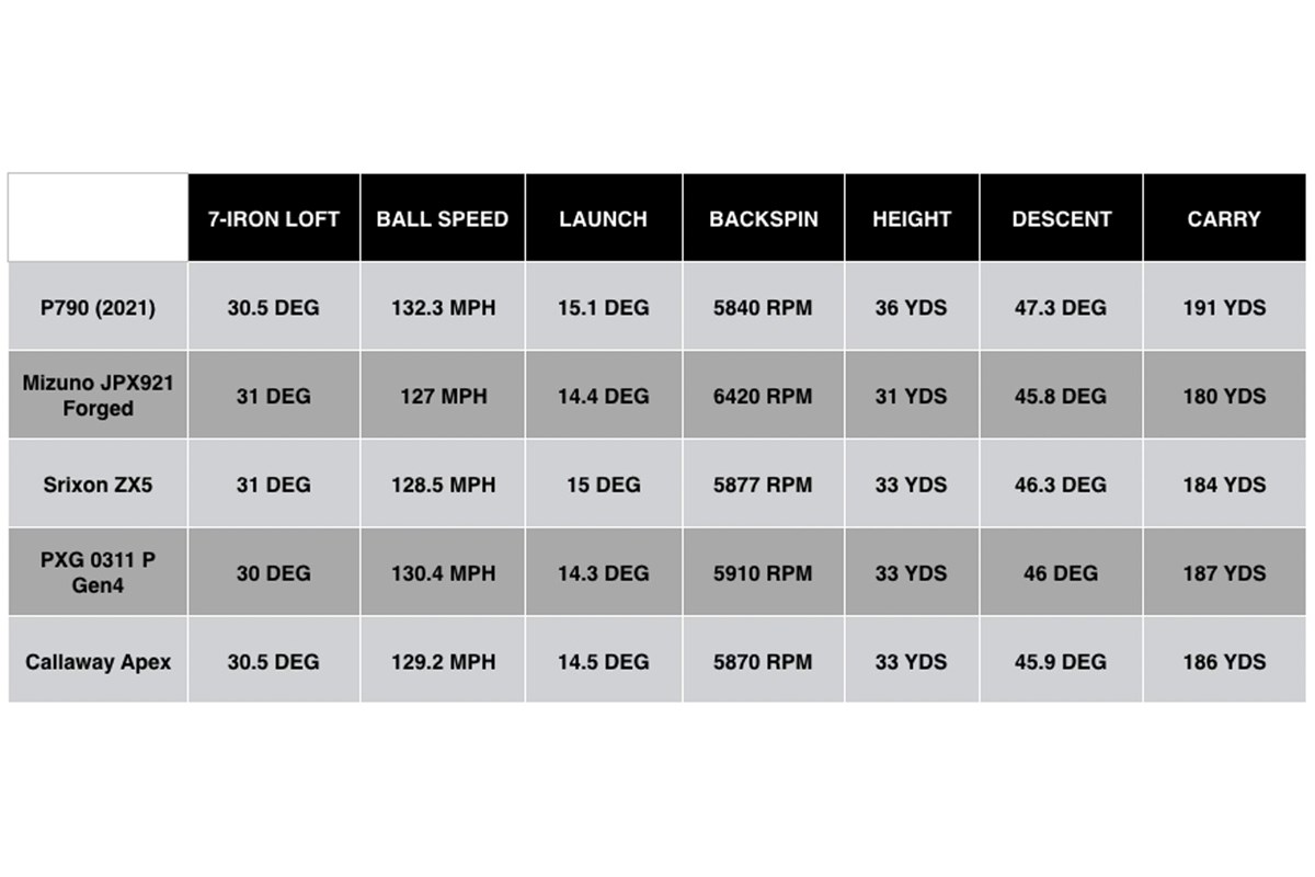 TG test pro Neil Wain tested the P790 on a launch monitor against irons with a similar target market from other brands.