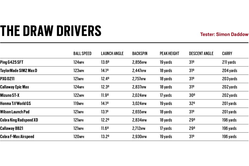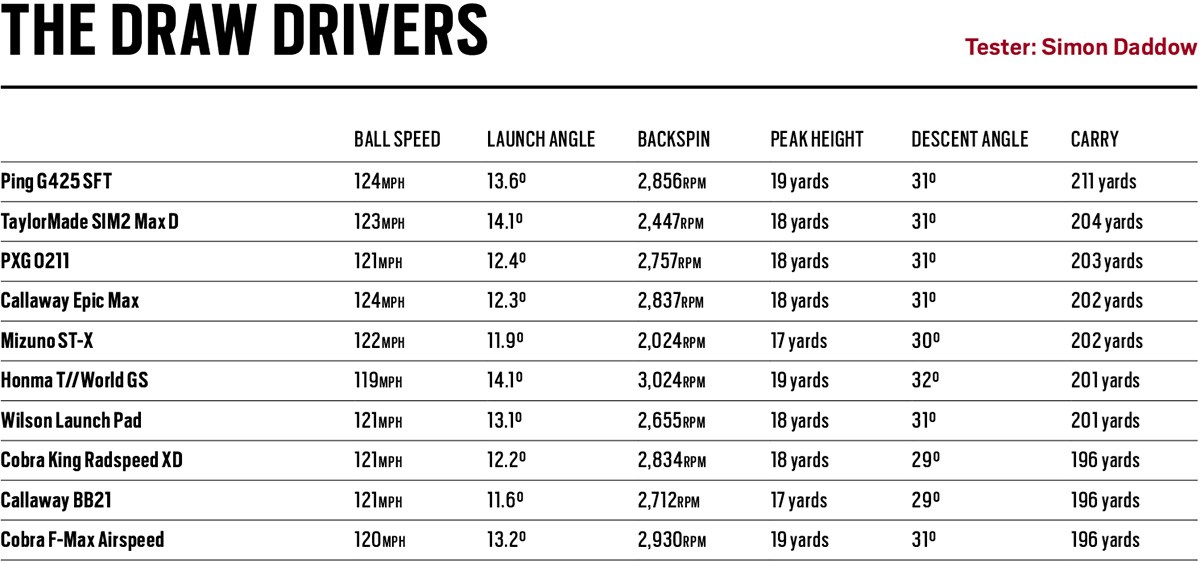 Launch monitor data from our 2021 draw drivers test.
