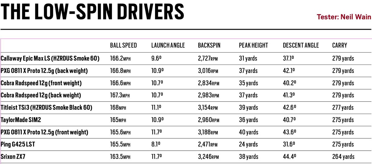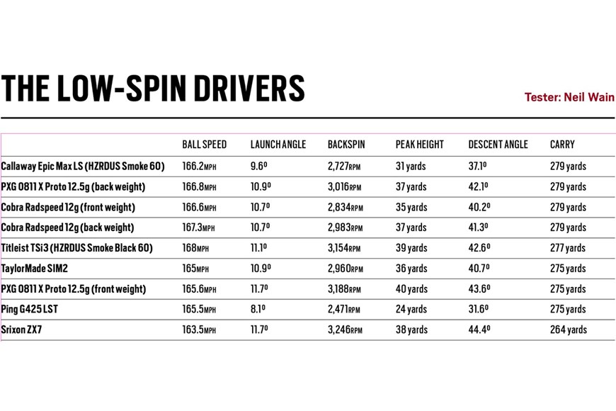 The launch monitor data from our 2021 low spin drivers test.