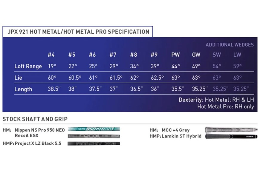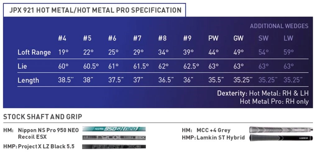 Specs: Mizuno JPX921 Hot Metal and Hot Metal Pro irons
