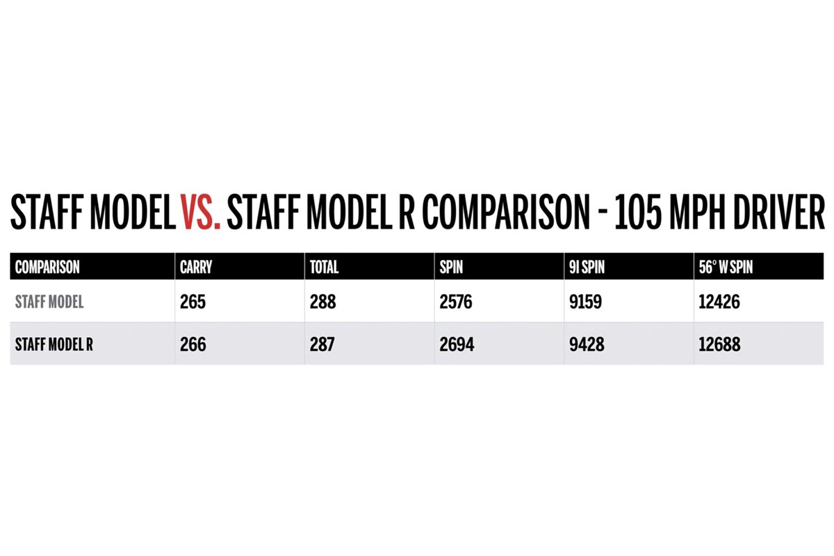 There’s no difference in terms of the construction of either ball, the core, mantle layers and cover are exactly the same so neither is aimed at different players. But because there’s a painted finish on the Staff Model and raw finish on the R ball there is a difference in how the two balls interact with the club face.