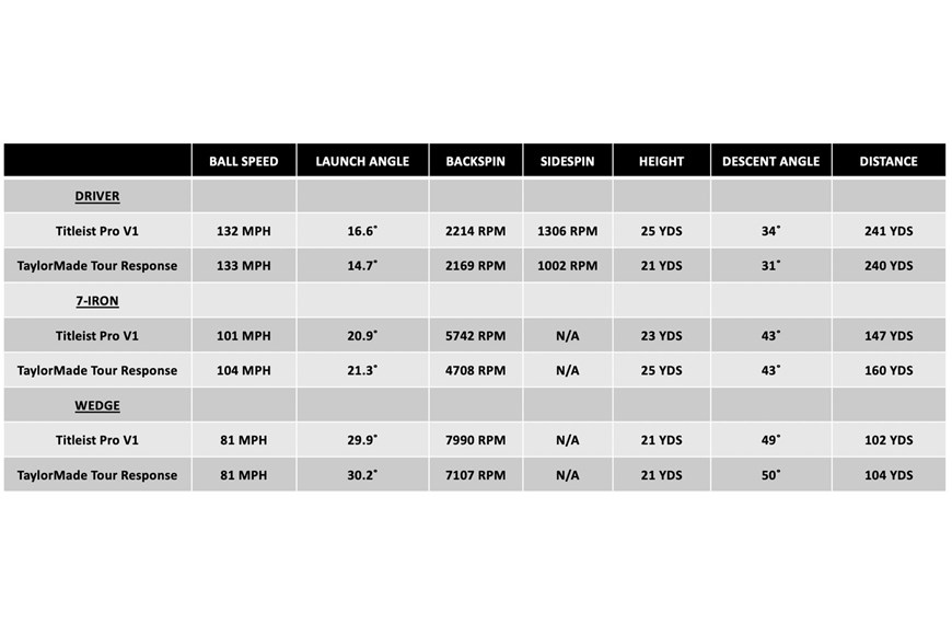 Key numbers: TaylorMade Tour Response vs Titleist Pro V1