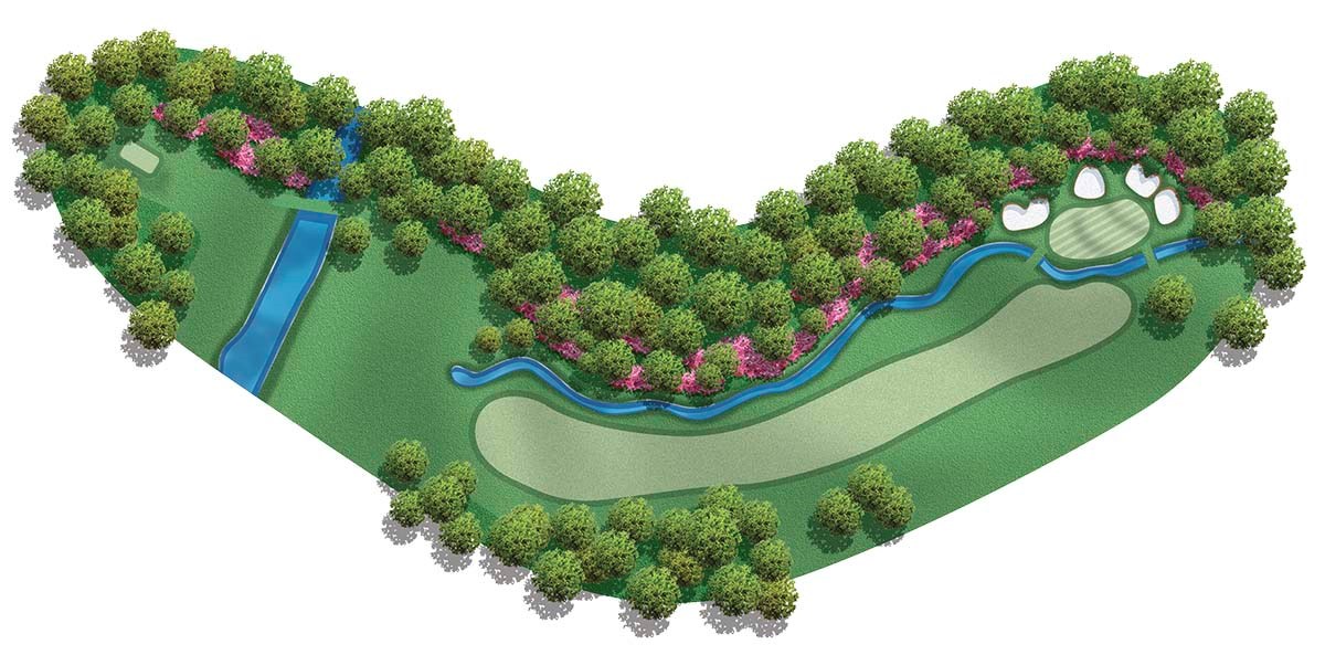 From the quiet of one of Augusta’s most secluded tee boxes, there’s no sense of the drama to come as you peer towards a fairway that tumbles up and down like a rollercoaster. The cambers and the left-to-right dog-leg camouflage your landing area, which is mildly unsettling.