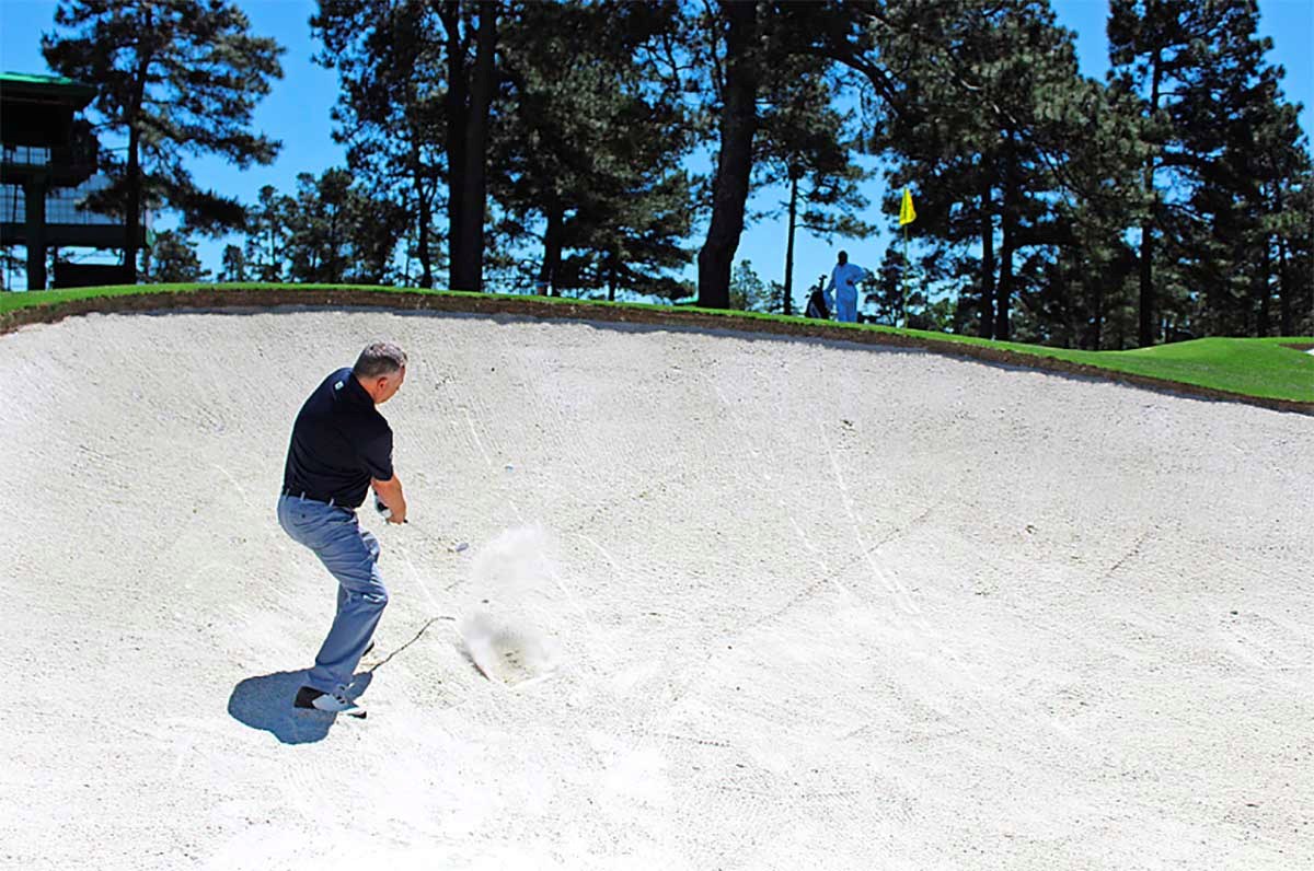 The sprawling bunker on the Augusta's 10th is in play for amateurs.
