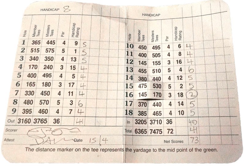 I had taken on and survived Amen Corner with a very respectable score of two-over par.