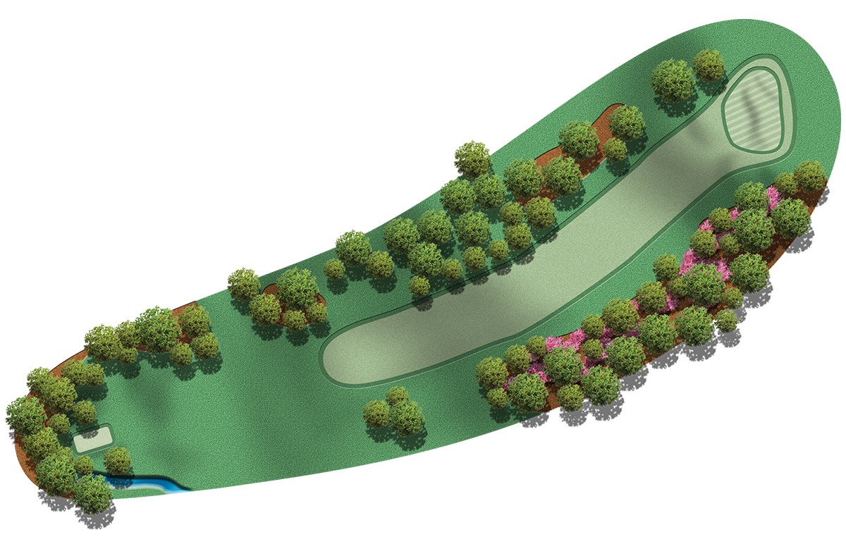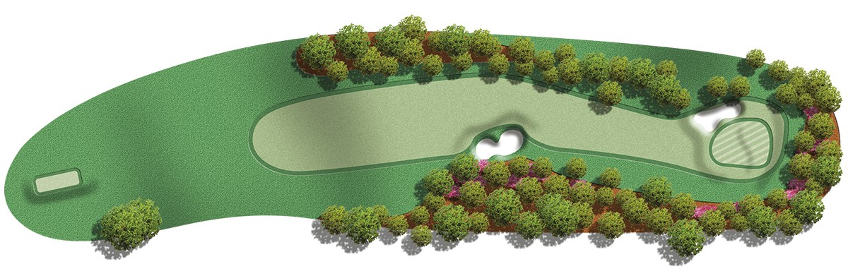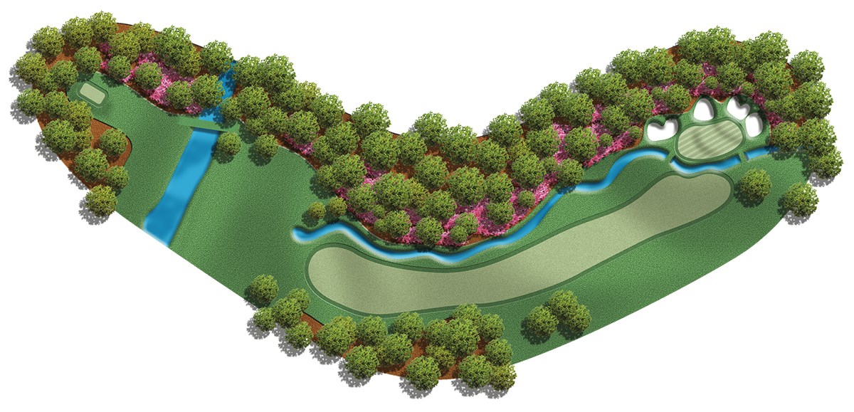 The hole is full of danger left and right with thick trees lining both sides of the fairway, a pond guarding the left side of the green, Rae’s Creek is waiting for your ball if you go long, a bunker near the right center of the green, humps, bumps, and wind often plays a huge factor down the hill. A whole lot to contend with on such a difficult par 4 ranking the second hardest hole in Masters history and is often the hardest hole of the year for most competitors.