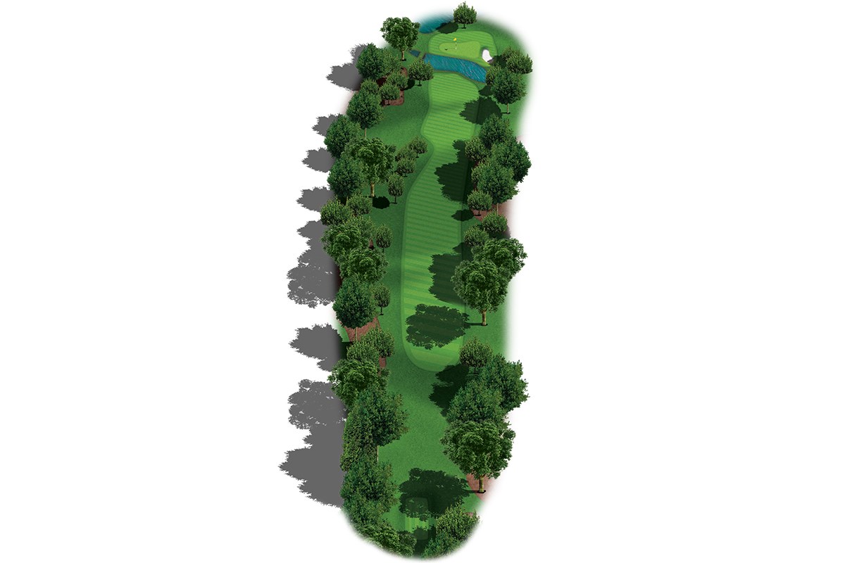 There isn’t much danger by the green, it’s bunkerless, and is instead guarded by a series of mounds on the left and right side. A scoring average of 4.82 (15) puts this par 5 amongst the top 5 easiest holes on the course. Most players who can avoid the trees on either side and the fairway bunker should find themselves climbing the leaderboard on this hole with some good approach shots.