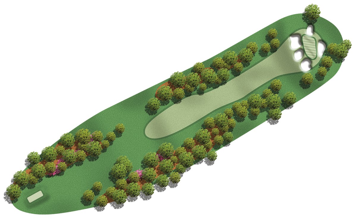 The fairway features a bunker that is nearly 60 yards long and used to be close to the green complex, but the green was moved and risen well above it to make the hole much more demanding. Traditionally this was the opening hole here at Augusta National, but the one thing that hasn’t changed is that it’s still the hardest hole on the course and has a Masters scoring average of 4.31 (1)