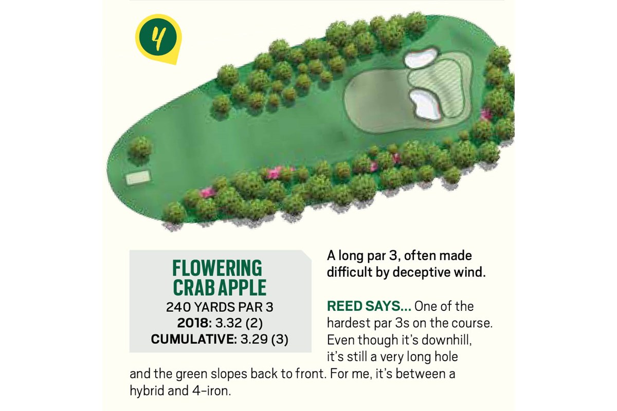 The green on the third slopes from right to left with a bunker guarding the left side; wherever the ball ends up, golfers are left with a tricky putt to the hole. Even though the green is challenging, it’s still a good opportunity for players to move up the leaderboard, with a scoring average of 4.08 (14th hardest). The third is the least changed hole on the course thanks to architects of Augusta Alister Mackenzie and Bobby Jones believing it is nearly perfect in its design.