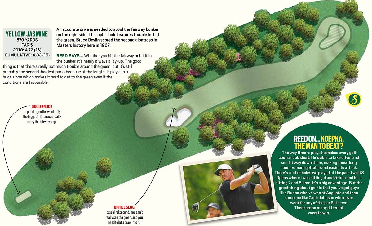 Apart from the obvious dangers at Augusta National of trees and sloping greens, there isn’t much to this hole that will cause players problems if they find the fairway off the tee. Statistically, the 14th has been in the top nine hardest holes on the course with a scoring average of 4.17 but if you can play the hole at level par over the week you should pick some points up on the field.