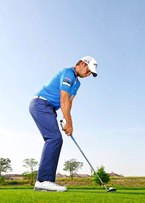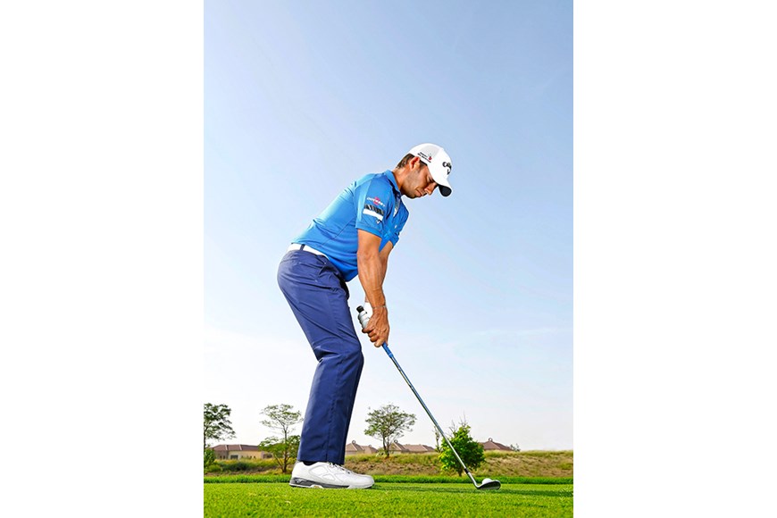 I stand square to the target and fairly close to the ball. Playing the ball back in your stance automatically moves more weight onto your front foot and adds forward lean to the shaft. This de-lofts the club slightly, so be prepared to see the ball come out lower and with less spin.