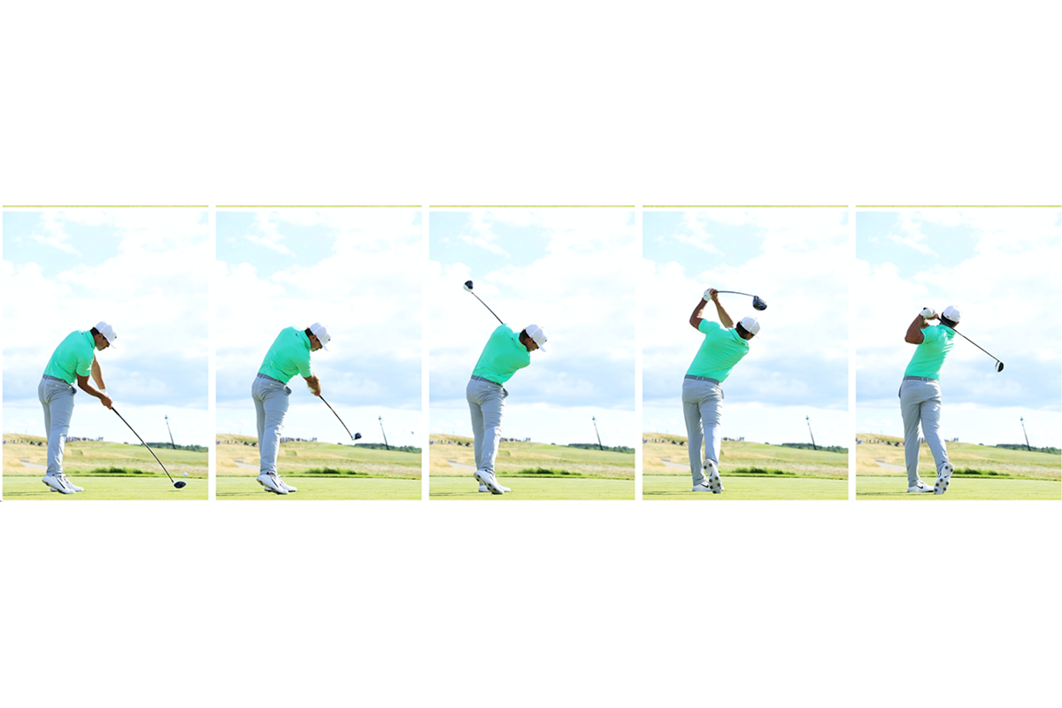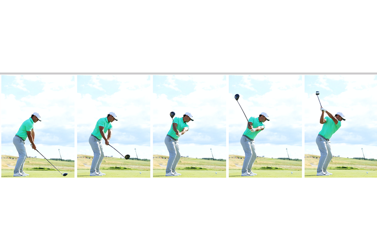 Brooks’ wrists have hinged fully, the elbows are level and his hands are opposite his torso. These are all sound checkpoints for your swing.