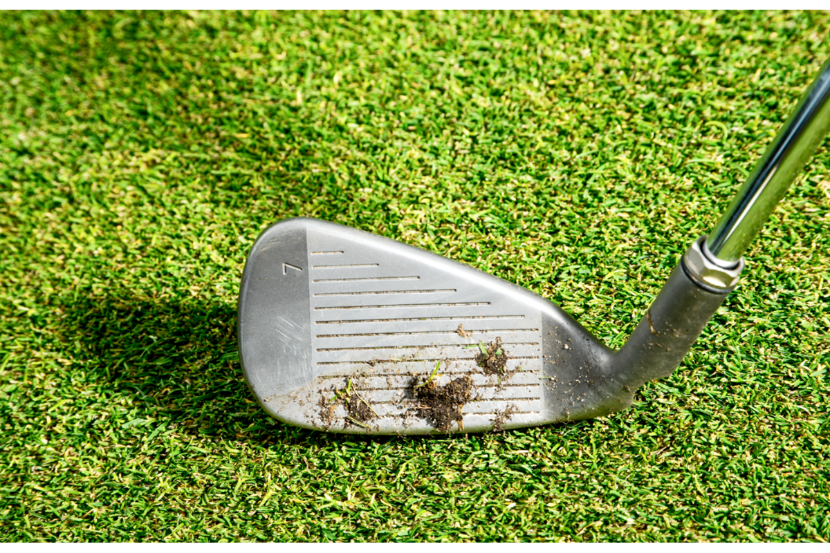 Check the faces of your irons after taking a divot. What is the pattern of mud and dirt on the face? Ideally it will leave a fairly level “tide mark”. But if the mark left is more diagonal – like the low-toe-to-high-heel mark shown here (above) – you may well be using clubs that are the wrong lie angle for you.