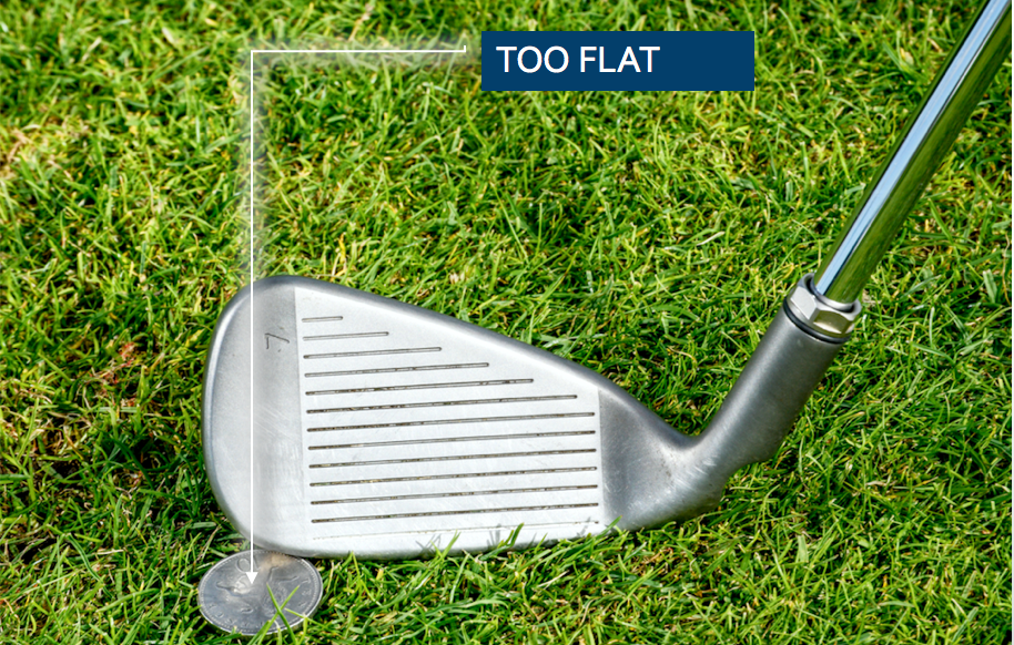 If there is no room at all to push the coin under the sole, the lie angle of the club is too flat. Ideally the coin will slide around a third of the way under the sole.