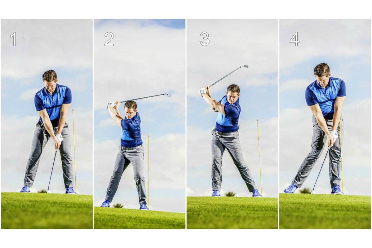 To boost your ability to strike down on the ball, work on an action that keeps your upper body over the ball till after impact. Known as ‘covering’ the ball, it helps you create an extended low point to your swing after impact, promoting a downward strike. Follow this plan.