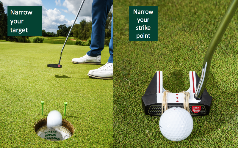 When your task is harder on the practice green, the putt seems easier on the course. Here are two ways to do it.