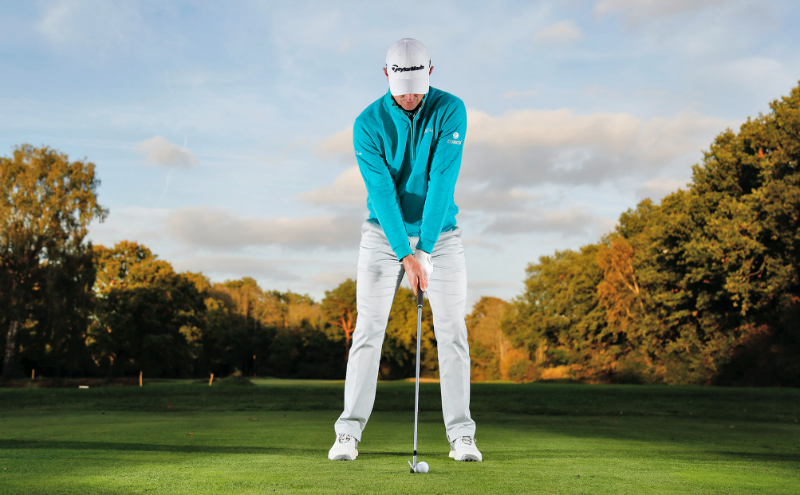 I like to feel like there’s a little pressure in my left foot – maybe 55% of my weight – when I set up with an iron. I also like to feel like I’m very heavy through my feet and trying to grip the ground with my toes. This helps me to stay more centred over the ball and keep my head still as I turn. If my weight is 50-50 and I feel light through my feet then I can sway o the ball a little bit, which reduces my power and consistency.